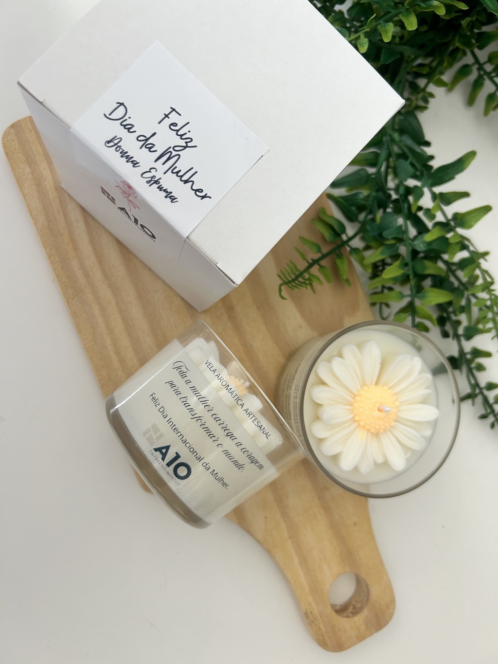 Adicione um toque de elegância aos seus eventos e festas com a nossa encantadora Vela Aromática Flor Margarida.